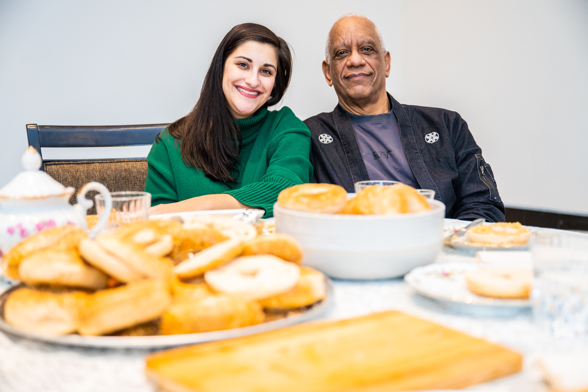 In a large, cavernous gallery space in North York, playwright Jordi Mand chats with director Philip Akin just a few feet from a dining room table. A photographer and videographer are meticulously adjusting their lights. The table is dressed with a tablecloth (the kind that looks like it belonged to more than one generation of home-maker), and a comically-large quantity of bagels.